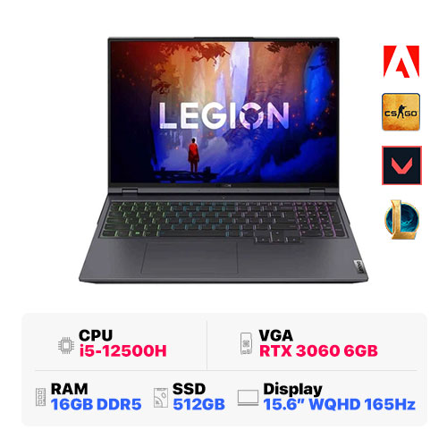 Lenovo Legion 5 15IAH7H 82RB0048VN : i5-12500H | 16GB RAM | 512GB SSD | RTX 3060 6GB | 15.6 inch WQHD 165Hz | Win 11 | Storm Grey