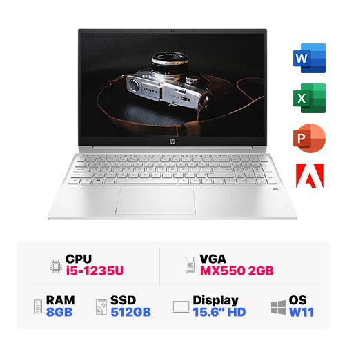 HP Pavilion 15-eg2036TX 6K782PA : i5-1235U | 8GB RAM | 512GB SSD | Intel Iris Xe Graphics + MX550 2GB | 15.6 inch FHD | Windows 11 | Sliver