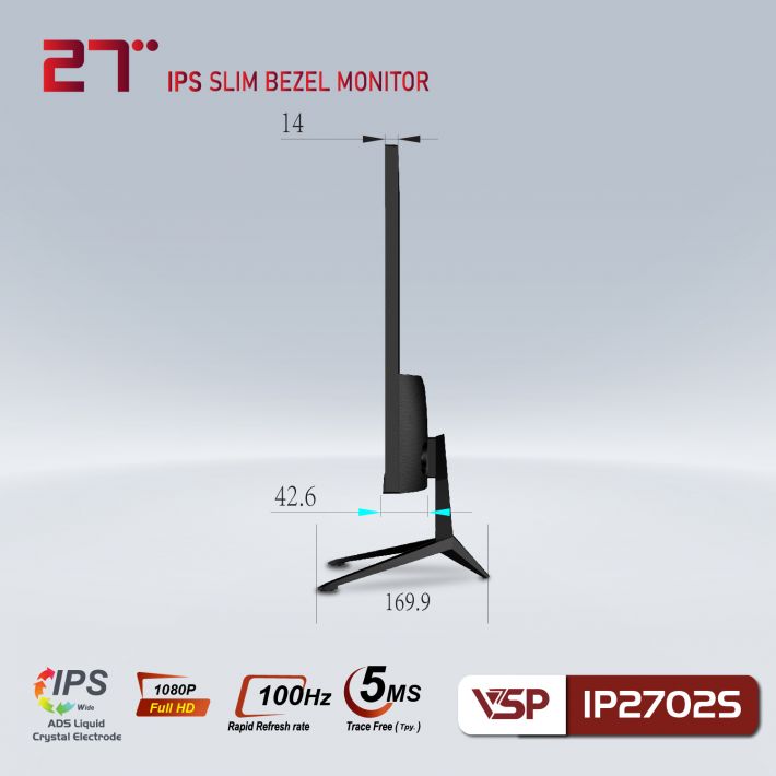 MÀN HÌNH VSP IPS THINKING 27INCH TRÀN VIỀN IP2702S FHD 100Hz ĐEN