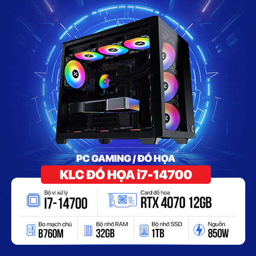 PC KLC : Intel Core i7-14700/ 32GB/ 1TB/ RTX 4070 12GB/ Mouse + Keyboard Logitech K120